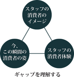 「今、この瞬間の消費者の姿」をプロジェクトに関わる人全員で確認するため方法は3つの視点での確認から始めます。