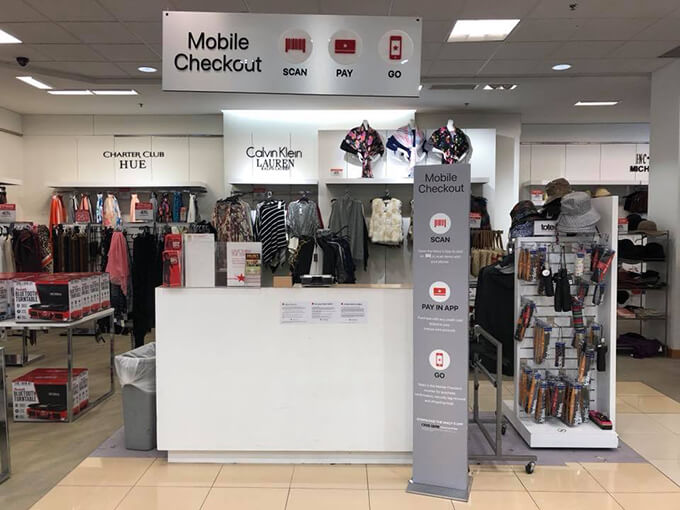 メイシーズで導入されている「モバイルチェックアウト」、クローガーやラフルズの「スキャンバッグゴー」、ウォルマートやサムズクラブ「スキャンアンドゴー」など、いわゆる「セルフレジからの更なる無人化」が進んでいました。