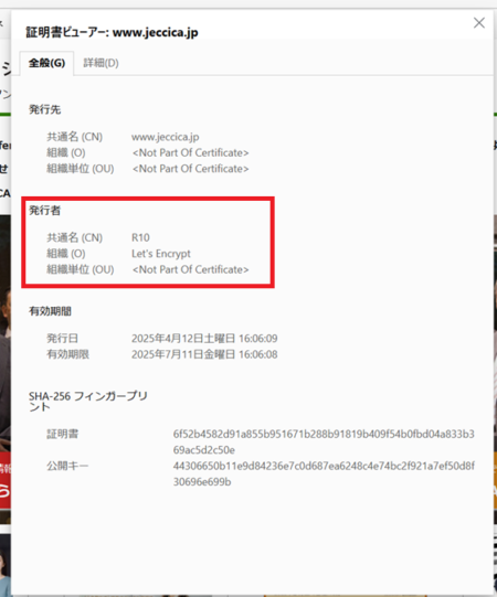 JECCICAのSSL証明書もLet‘encrypt を利用されています(図2)