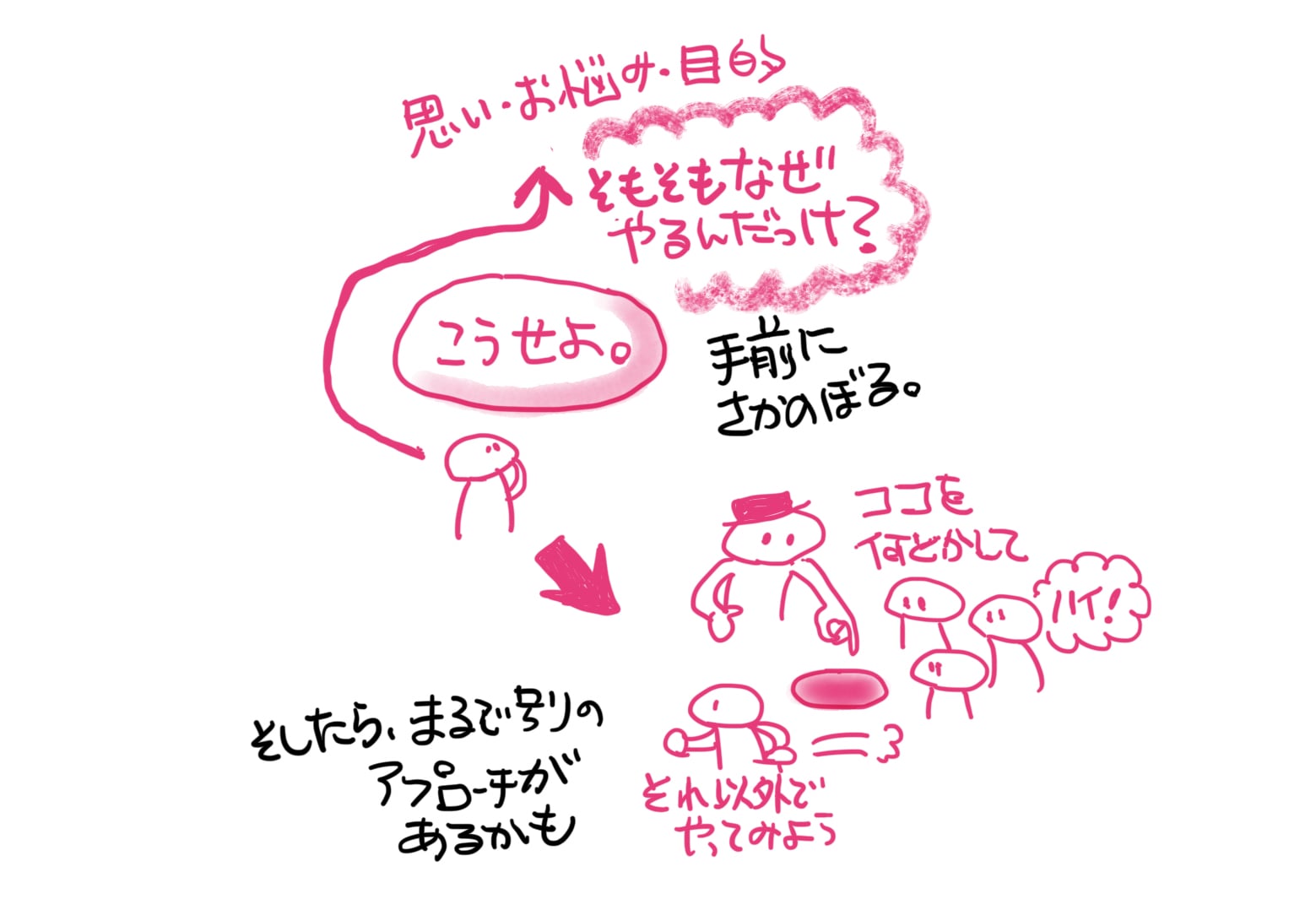 そうやって「困ったな」となった時に思い出して欲しい言葉、それは「そもそも」です。「そもそも言われた範囲だけ考えてていいのか?」と自問自答する。そして「そもそもの課題自体を白紙に戻してみよう」まで行ってみる。これ大事です。