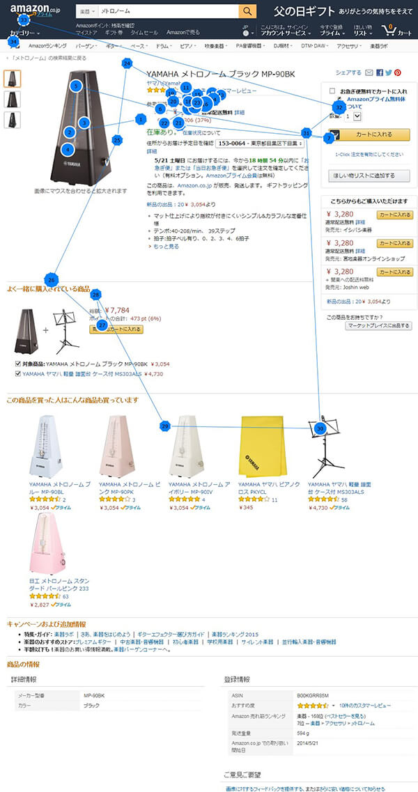 大手ECモールを使う様子をアイトラッキング – Vol.3 Amazon.co.jpに敵なし…メトロノームを探す企画系女子の視線