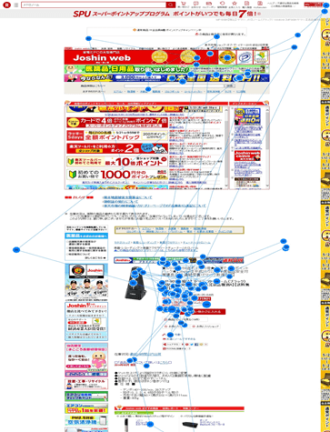 1段目中央と2段目左側の商品に興味が向いていますが、検索結果で商品情報を確認する際の目線の移動量が他サイトと比べ少ないことが分かります。