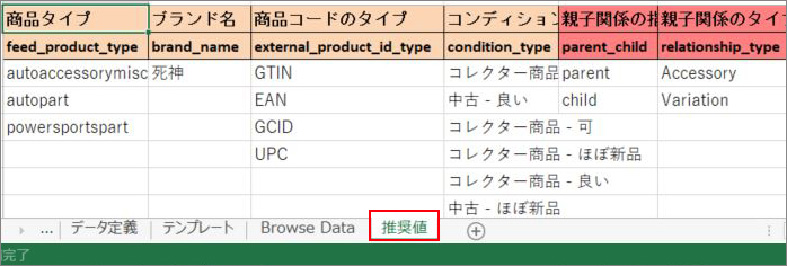 ・BrowseData :登録する商品のブラウズノードIDのリストです。