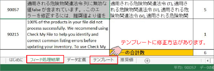 具体的な修正内容と修正方法がエラーレポート「テンプレート」に掲載されています。