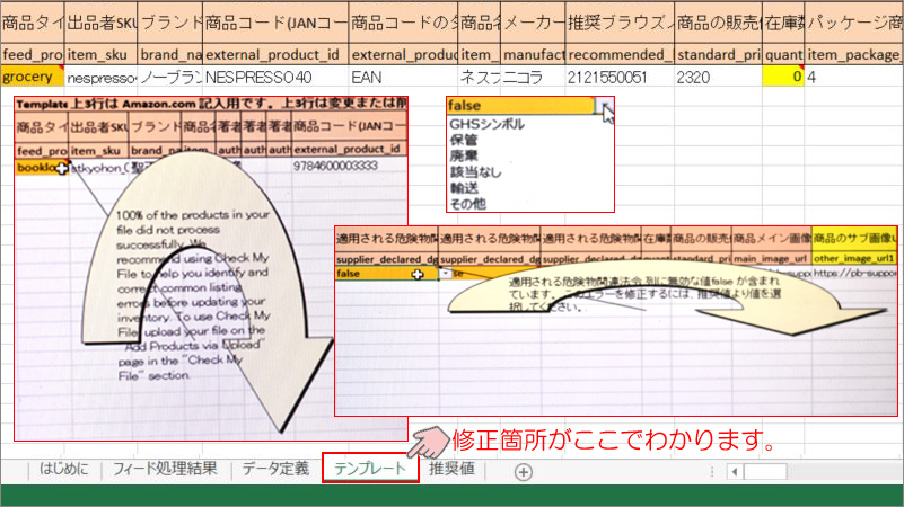 一括アップロードによる商品登録は、数多くあるジャンル(カテゴリー)毎の異なる在庫ファイルのテンプレートにより行われますが、先に説明しましたように、データ仕様が合わないなど様々なエラーが発生し、無事に登録を完了させることは容易ではありません。しかし、現在「カスタム在庫ファイル」のみならず、一括アップロードによる商品登録はかなり便利で賢いツールです。「Amazonヘルプ要らず」です。