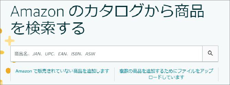商品名、JANコード、書籍コード、品番などでAmazon検索し、出品の有無を確認します。