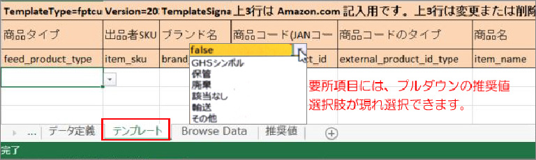 テンプレートタイプとバージョンなどAmazon.com記入用