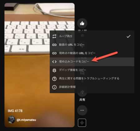 その上で、動画タテ化計画を実行されたい、という場合は、まずはサイト内に埋め込んでいる動画のタテ化を検討してみましょう。YouTubeチャンネルにタテ動画をアップして右クリックして「埋め込みコード」取得し貼り付けるだけです。なお、GA4で動画解析をしている場合は、埋め込みコード内の動画URLの末尾にパラメータ ?enablejsapi=1 が付与されているか確認が必要です。