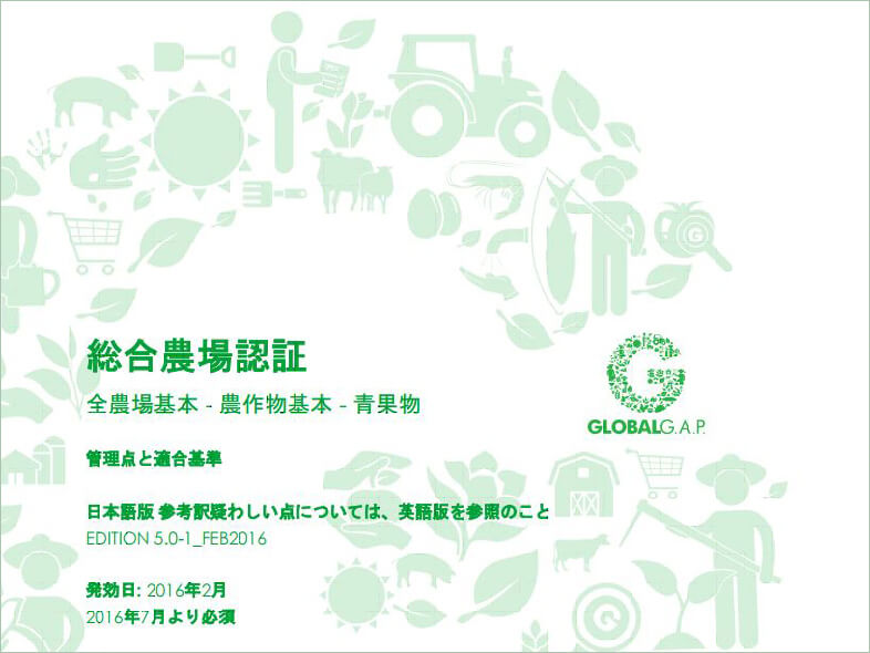 いきなり「グローバルGAP」。このワードを耳にした読者もおられるはず。「Good Agricultural Practices は、農業生産の環境的、経済的及び社会的な持続性に向けた取組みであり、結果として安全で品質の良い食品及び非食品の農産物をもたらすもの。〔国連食糧農業機関(FAO)より〕」とあり、GAPの前にGlobalが付いた「Global Good Agricultural Practices」は、”国際標準の生産工程管理を行う生産者”であると、国内外の取引先に交渉する際のアピールポイントとなる認証です。