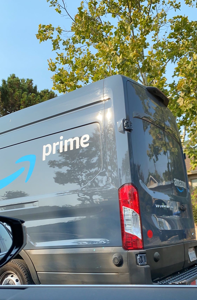 Amazonにおけるおおまかな商品の配送プロセスは、全世界で175ヶ所以上あるフルフィルメントセンターから仕分けセンターに商品が移動され、ここからAmazonの貨物機や配送トラックに加え、UPS、USPS、FedExなどの運送業者が使われます。注文顧客へは各運送業者が配送しますが、最近は各地でAmazon Primeのマークのついた配送バンを見かけるようになりました。