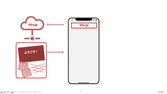 例えば「55v. jp」というサイトをスマホで訪問します。するとスマホ上にはまだ画像や文言といったデータがありませんので、「55v. jp」というサーバが、画像や文言をスマホに送信してくれます。これがホームページ閲覧できる仕組みですよね。