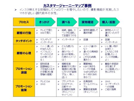 前回のコラムで「カスタマージャーニー」のお話をしましたが、今回はこのフレームワームを使って、顧客の心理と行動を促すため、端的に言えばハートを射止めるプロモーション企画立案を行う道しるべとなる「カスタマージャーニーマップ」の作成方法をお話しします。