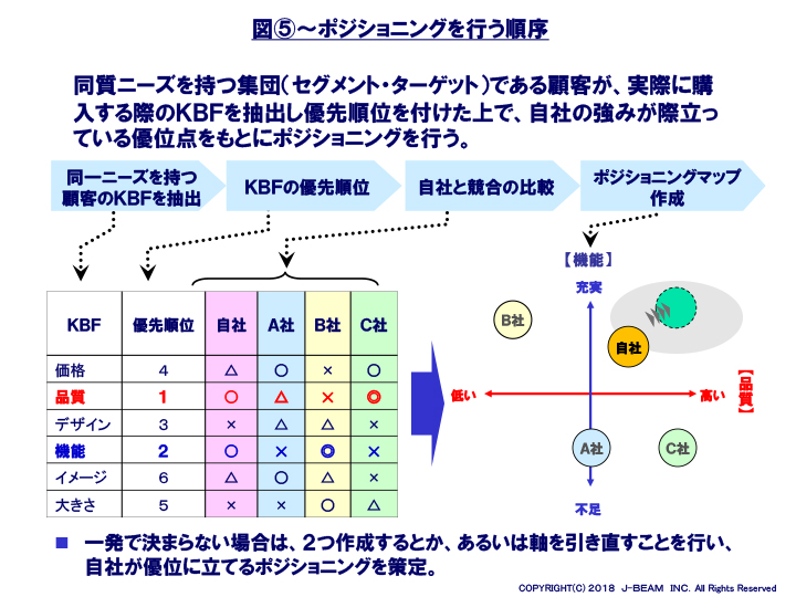 ポジショニングマップの軸は「KBF(key buying factor)」で作成する