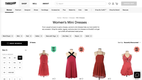 ▲thfredUPのオンラインショップサイトにて各属性抽出による商品検索結果。