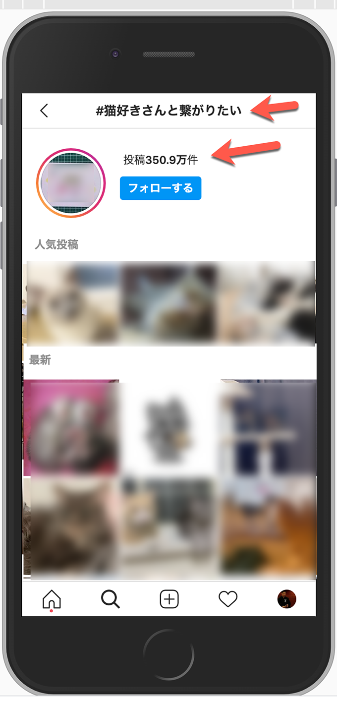 インスタグラムでは、ハッシュタグが付いた投稿は、人気順(エンゲージメント順)、投稿順(最新)で並べ替えられます。