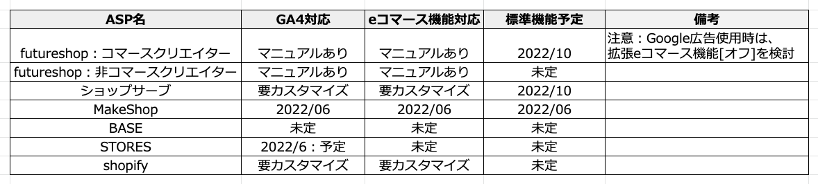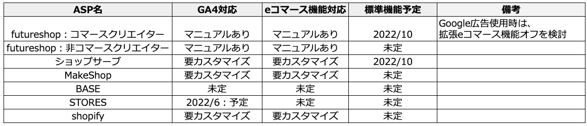 各ASP対応状況2022年6月25日版 各カートASPの対応状況アップデート M …