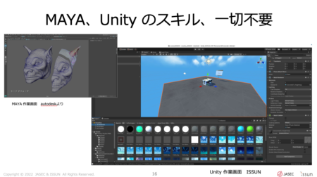 なお今回は「誰でも使える(運用できる)」という条件に当てはまらなかったため、選択肢に含めませんでしたが、図中の「難しい」に位置するVR-CHATやオープンソースの hubs cloud も自由度が高く多少のスキルさえあれば作成・運用可能です。例えるなら、hubs cloud でメタバース空間を作るということは、Wordpressを使ってECサイトを構築するようなものです。その際に必要となる CSSやHTML、データベース、photoshop、javascript といったスキル群が、図中央の「Unity」というVR空間を構築・制御するツールやAUTODESK社MAYAに代表される様な3Dモデリングツールのスキルや知識にあたります。