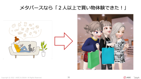 筆者がメタバースECに期待していることは「メタバースなら、2人以上で買い物体験できる」という点です。