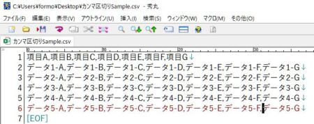 ③のカンマ区切りファイル(csv)は、データ間をカンマで区切っており、改行で各レコードのおわりを示しています。