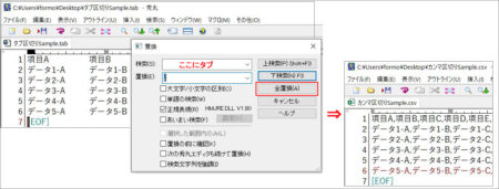タブ区切りファイルからカンマ区切りファイルへ変換
