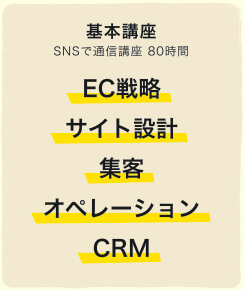 撮影講座/画像処理/サイト設計 デザインディレクション/受注処理 ピッキング配送/在庫物流/物流実体験 広告/SEM・SEO/ニュースリリース SNS/407/twitter/Facebook アフィリエイト/プレゼン実践