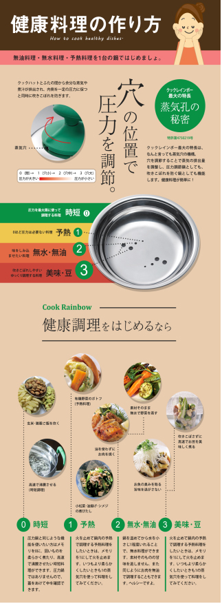 「教育を熱望する人達に向けて、ノウハウを提供してWebサイトへ誘導する」実験のために作成した画像の一部がこちらです。当社はお鍋の製造販売会社です。Pinterestユーザー向けに、無水料理、無油料理、豆の煮炊きなどの調理方法を伝え、「健康料理を作る鍋」としてアプローチします。結果は数値が揃ったらまたレポートしたいと思います。