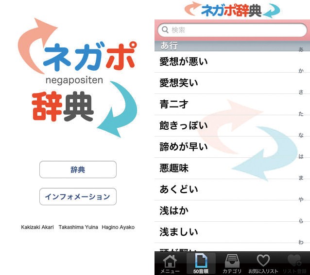 女子高生が考えたスマートフォンの「心のアプリ」「ネガポ辞典」というアプリがあります。