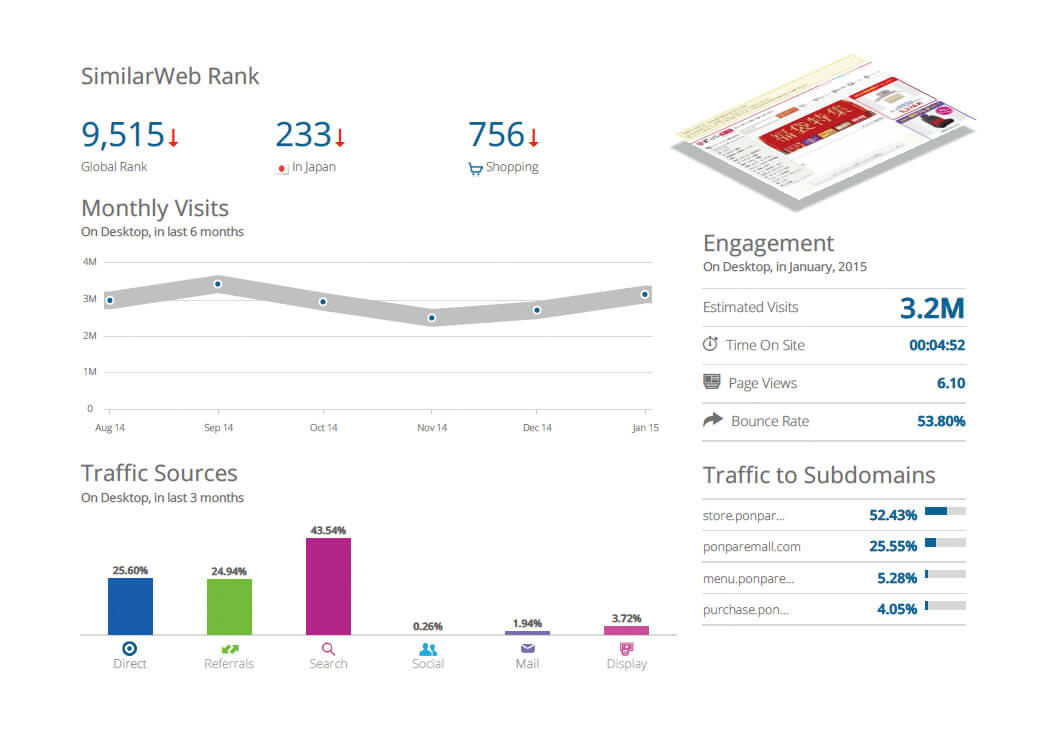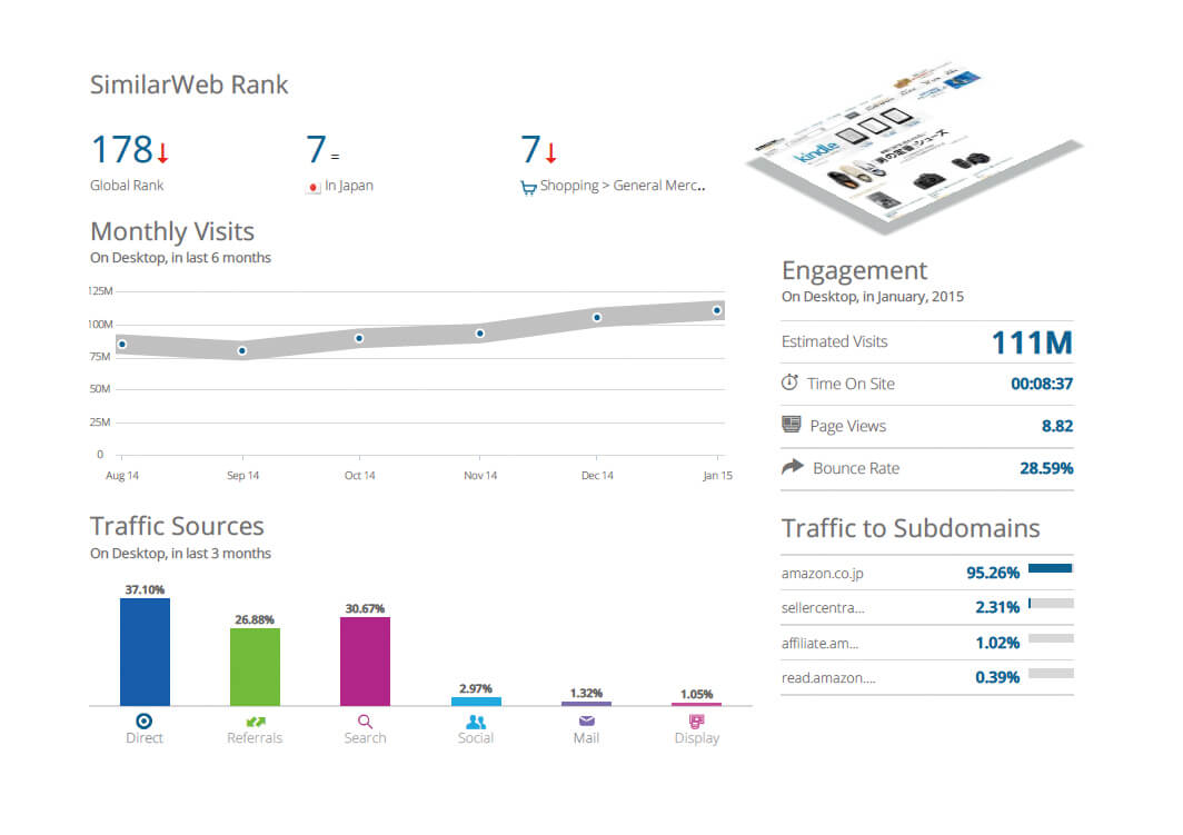 その裏付けに私がよく使うのが競合サイト分析ツールSimilarWebです。 http://www.similarweb.com/