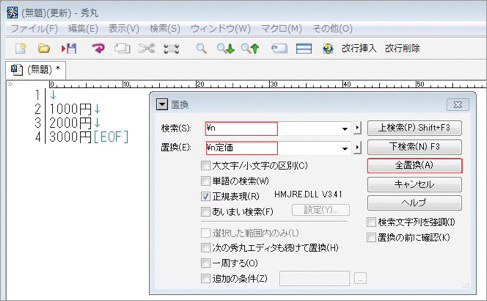 秀丸エディタの検索・置換・マクロ機能を使ってECで使用するデータファイルを簡単に加工編集することができます。