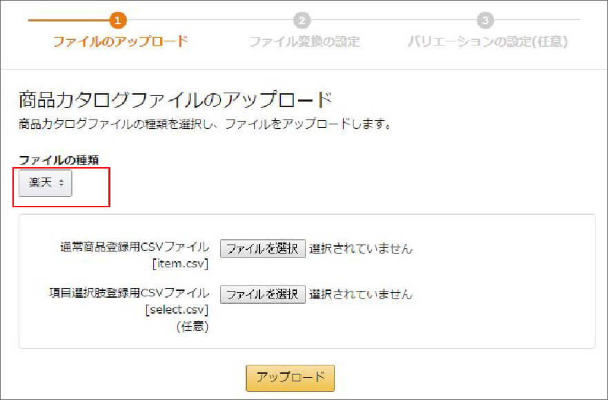 楽天またはYahoo!ショッピングの商品CSVファイルをアップロード