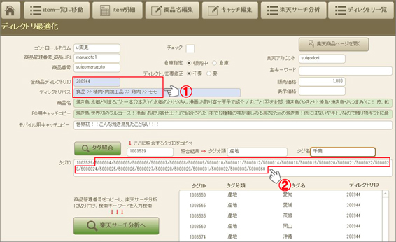 商品に適切な「全ディレクトリID」や「タグID」が設定されているか確認する補助ツールで、実例を見てみましょう。