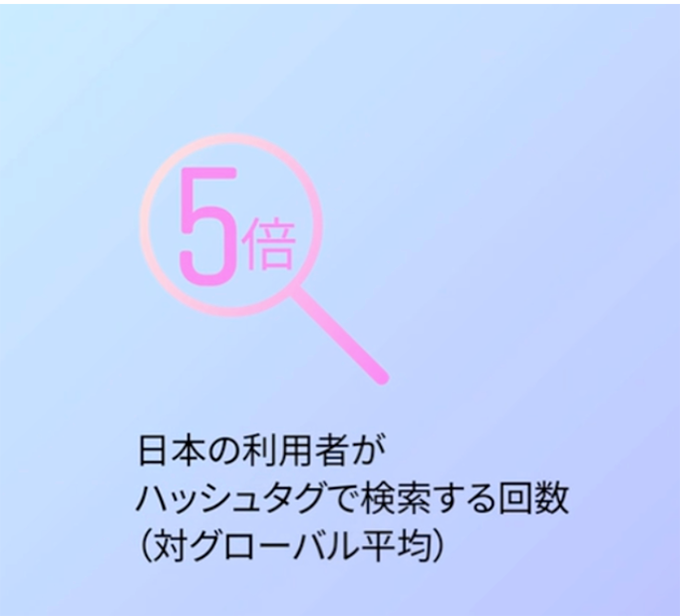 このイベントでは、その「ある機能」は日本以外の国と比べて「5倍」活用されていると紹介されました。それが「ハッシュタグ検索」です。