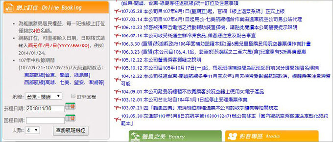 です。台湾国内航路線に台湾本土の台東空港から太平洋に浮かぶ「蘭嶼」という島にプロペラ機で約25分の「台東-蘭嶼」航路があります。台湾本土と島を結ぶ重要な空の交通手段ですが、客員定員は19名とその予約を勝ち取るのは狭き門です。日本から8名くらいのグループで予約を取ろうというのですから、かなりの困難さです。フォームの入力(予約)条件は次の通りです。