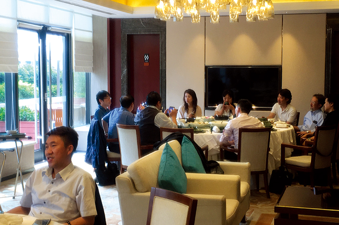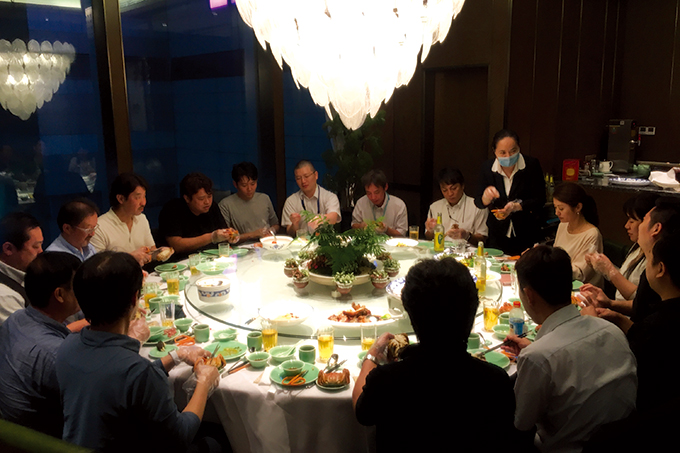 深圳入りした日の夕食は、早速ご馳走になりました。深圳市中日経済文化交流促進会(以下、促進会)は、半官半民でできた一般社団法人で、日本のJETROのような組織です。今回のツアーは、訪問企業のセッティングや移動手段の手配から当日の通訳・アフターフォローまですべて促進会のお世話になりました。
