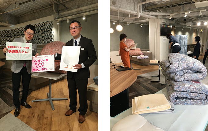 今回は「今年の夏は好きな時に好きな場所で」と言うテーマで夏の眠りをサポートするアイテム、心地いい冷感素材の敷きパッド、ご自宅で洗える羽毛布団や、眠りを追及した枕などバイヤーが自信を持って紹介している。コメントもたくさん入り、最初に緊張していたマーチャンダイザーもだんだんと自信を持って商品を紹介した。