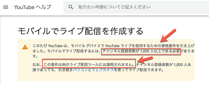 でも、YouTube公式ヘルプを見てみると、気になるひとことが。「配信アプリ経由ならOK」と記載があります。