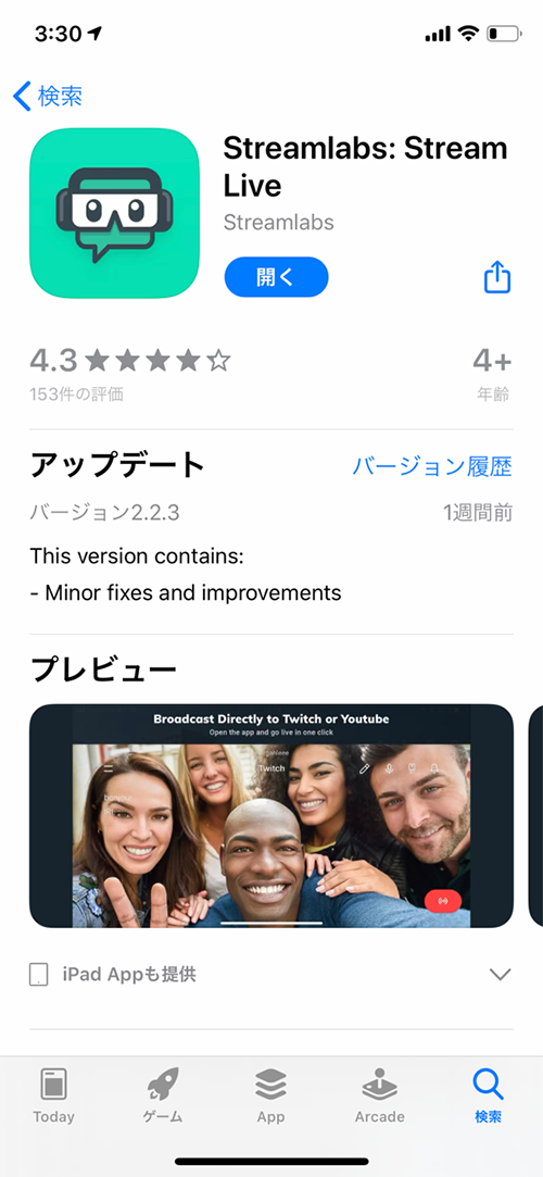 そこで、StreamLabsというアプリ。iOSとandroidで対応しています。PCでゲーム実況などを配信している方ならご存じの「OBS」の派生です。元々はコミュニケーションを主体としたアプリのようなのですが、このアプリを使えば、僕の個人チャンネルのような1,000人以下の弱小YouTubeチャンネルでも、思い立ったが吉日で好きな場所でいつでもLIVE配信できるんです。