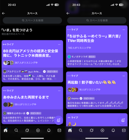 また、自分のフォロワーが参加しているスペースは他の人にも表示されやすくなり、それがきっかけでフォロワー同士がつながることもあります。偶然同じスペースに居合わせたことが縁となり、深い関係へと発展していくことも少なくありません。「見るだけ専門」のSNSとは異なり、人と人の関係に“温度”が宿る。それが、スペースの本質なのです。